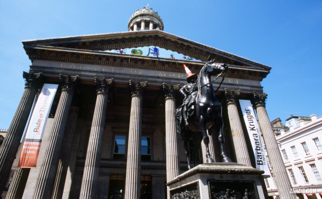 One of the main cultural attractions in Glasgow is the Gallery of Modern Art, or short GoMA. It opened its doors in 1998 and shows changing exhibitions of modern (excentric?) artists.