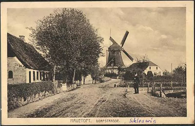 This undated historic postcard image shows the windmill of Havetoft, a small village in Northern Germany. Havetoft is located in Angeln which is the area between Schleswig, Flensburg, and the Baltic Sea. Several of my ancesters had lived in the area, which is why I was interested in this postcard in the first place.