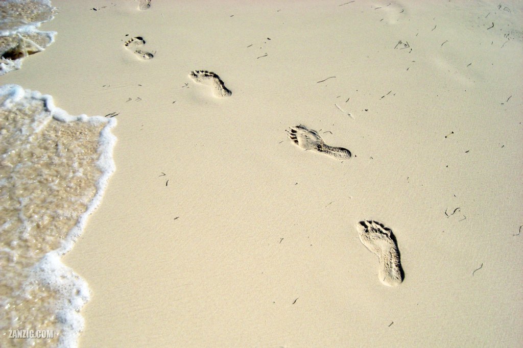 DECEMBER 2007 – Footsteps in the wet sand of a beach in the Caribbean. © Mark Zanzig/zanzig.com