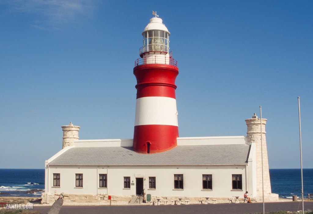 MARCH 2004 – Cape Agulhas Lighthouse at the southern-most point of the African continent on a sunny afternoon. © Mark Zanzig/zanzig.com