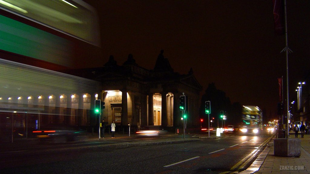 The last couple of days for our trip to Scotland were reserved for Edinburgh. While we had experienced the city mostly in rain, one evening the rain had stopped. We had been dining with friends from the United States and took a walk along Princess Street, one of the large streets. Buses and some cars rushed by, and I thought this angle, with the Royal Scottish Academy – a major art museum – would be nice.
