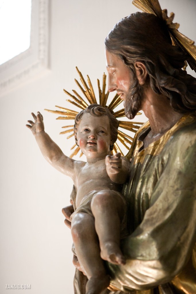 The church has a beautiful interior and presents a larger-than-life statue of the holy Joseph as he carries his son Jesus. The sunlight was streaming in from behind and illuminated the statue perfectly, matching the innocent joy of the baby.