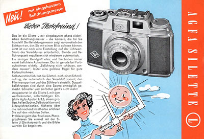 Here’s an old analog camera body I recently came across on eBay, and I gave it a try and purchased it. It’s a Silette-L from Agfa in Germany – back then a film and camera giant. It came with a sturdy brown leather case and a 36-page instruction booklet in German (Gebrauchsanweisung Agfa Silette-L) that explains the camera in detail.