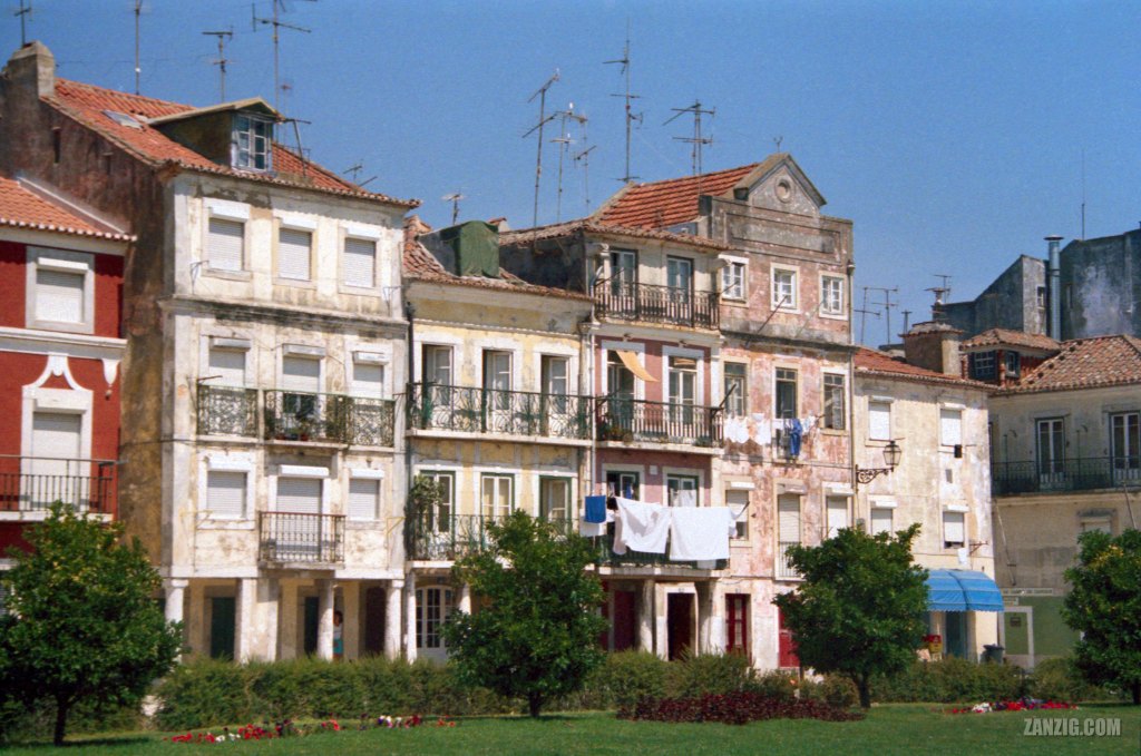 SEPTEMBER 1988 – The buildings of the R. Vieira Portuense in Lisbon, Portugal, seen from the Jardim Vasco da Gama. Photo © by Mark Zanzig/zanzig.com