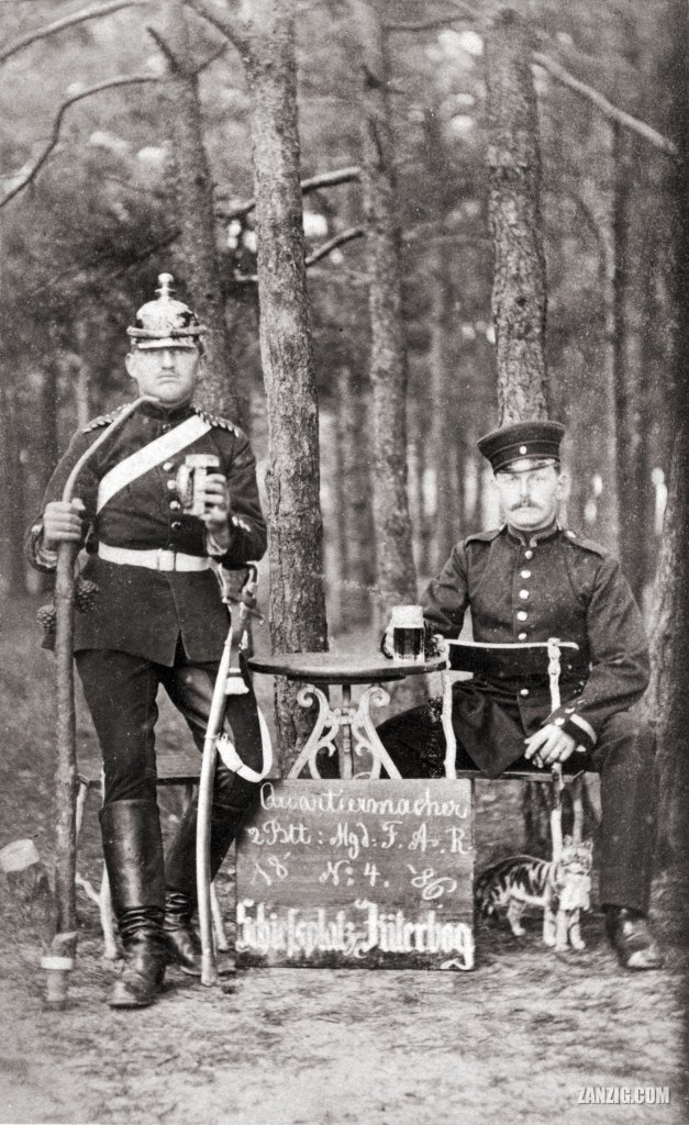1886 – Two quartermasters of the prussian army pose for the photographer at the shooting training area in Jüterbog, Germany. Photo: J. Plintzner, Jüterbog