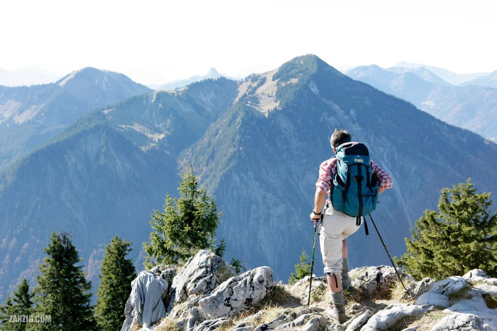 OCTOBER 2005 – A hiker admires the view at the Wallberg mountain from the Bodenschneid in Bavaria. © Mark Zanzig/zanzig.com