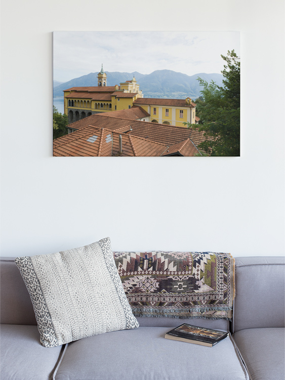 This image, for example, shows Madonna del Sasso in Orselina, Switzerland, a sanctuary and pilgrimage church that sits high above the city of Locarno in the mountains, overlooking the northern part of the lake. The sanctuary was founded after a vision of the Virgin Mary in 1480 and quickly became a popular destination for pilgrims. It can be reached directly from Locarno through the Locarno-Madonna del Sasso funicular and offers beautiful views across the lake and the city.