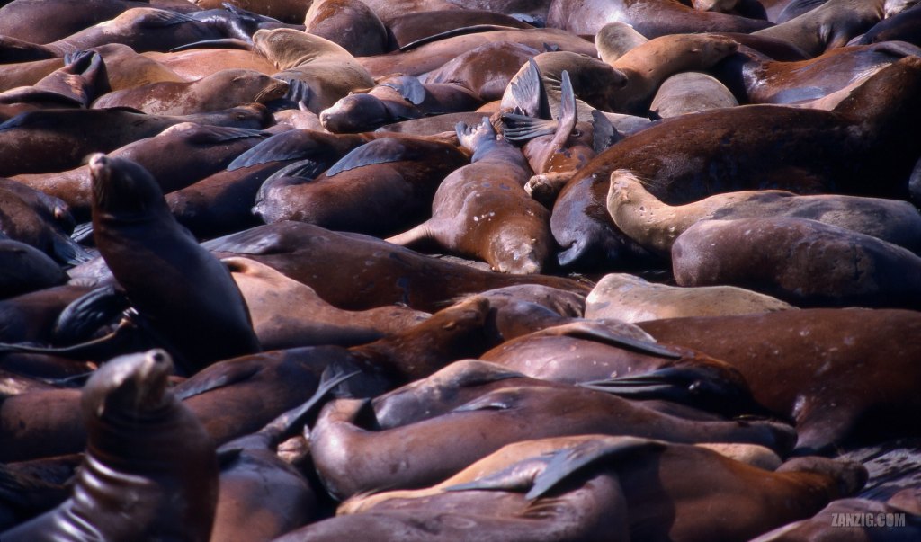 SEPTEMBER 2003 – Californian Sea Lions enjoy the sun at the Sea Lion’s Rock next to Pier 39 in San Francsico, California. © Mark Zanzig/zanzig.com