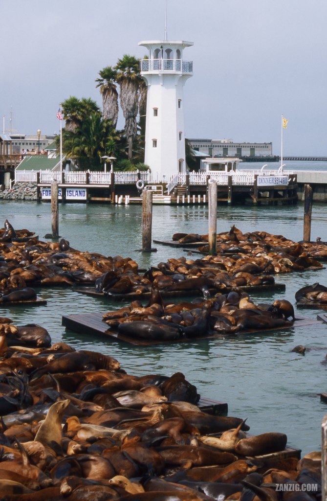 Earlier today I shared a 2003 image of sea lions cuddling next to Pier 39 at Fisherman’s Wharf in San Francisco on the so-called Sea Lion Rocks. Nobody knows exactly why they were there, but they seemed to like it.
