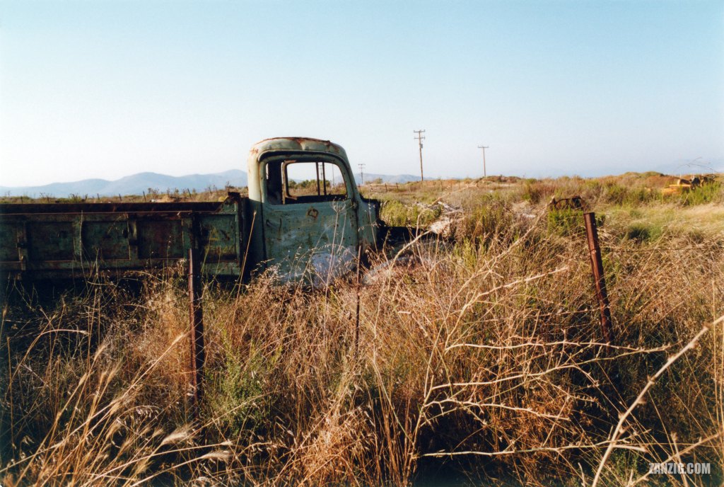 SEPTEMBER 1994 – The rusty wreck of an old truck stands on a field near Marmari Beach on the island of Kos, Greece. Photo © by Mark Zanzig/zanzig.com