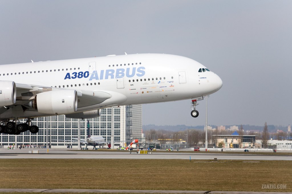 MARCH 2007 – The biggest plane on Earth, the Airbus A380, visited Munich, Germany, on 28th March. The five hour stopover ended Lufthansa’s first phase of real life tests of the plane. The plane with the French registration F-WWJB landed safely in Munich at 12:36 MEST in front of the press, admired by thousands of spectators around the Munich airport who tried to catch a glimpse of the new plane. Lufthansa plans to take up the first scheduled flights with the A380 in 2009 from Frankfurt only, so it will be some time until the plane will be in Munich again. © Mark Zanzig/zanzig.com