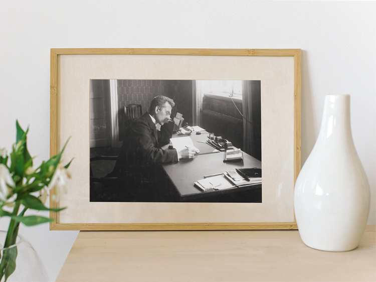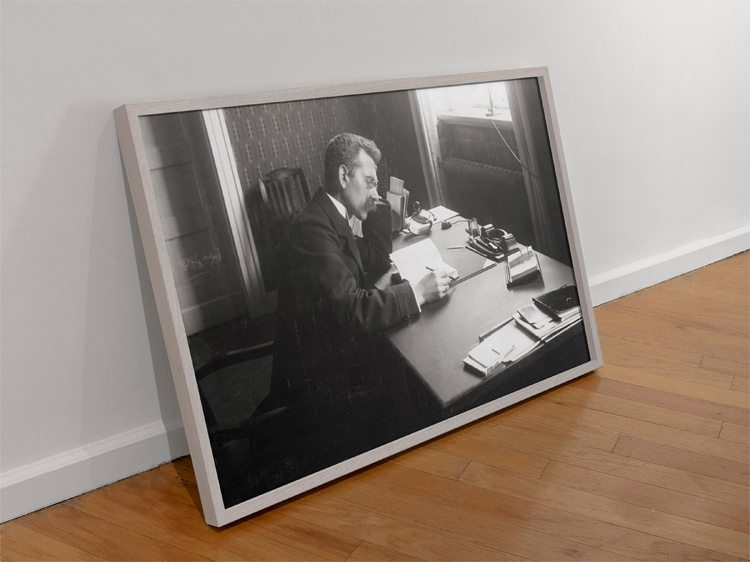 Of course, we can’don’t know whether the man at the desk was sitting at his desk in his office, whether it was the office at the photo studio, or whether it was an entirely staged scene in the studio (which I doubt.) I think that this man works in his own office.