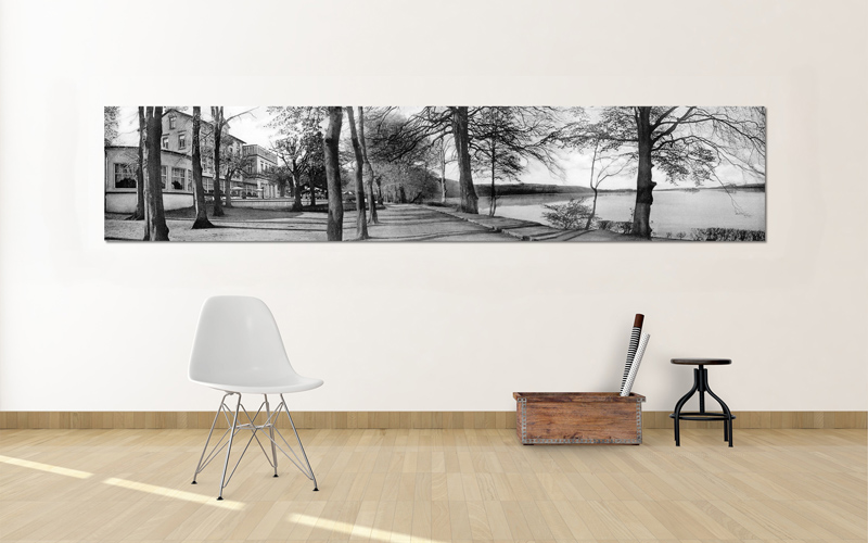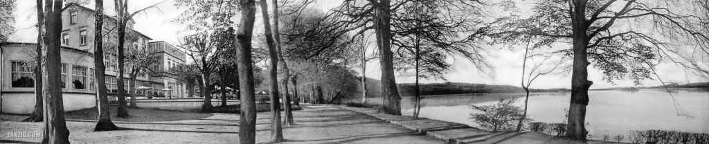 The photo is a folded postcard that is three times as wide as a traditional postcard. This makes it an exciting print, because it allows for creating a huge image from it (in my case, 77 Megapixel). Not only do you get a lively impression of how the location presented itself back in 1940 – with the Hotel Dieksee on the left, the promenade in the center, and the beautiful lake on the right – but you can zoom into the high-resolution image and discover many small details.