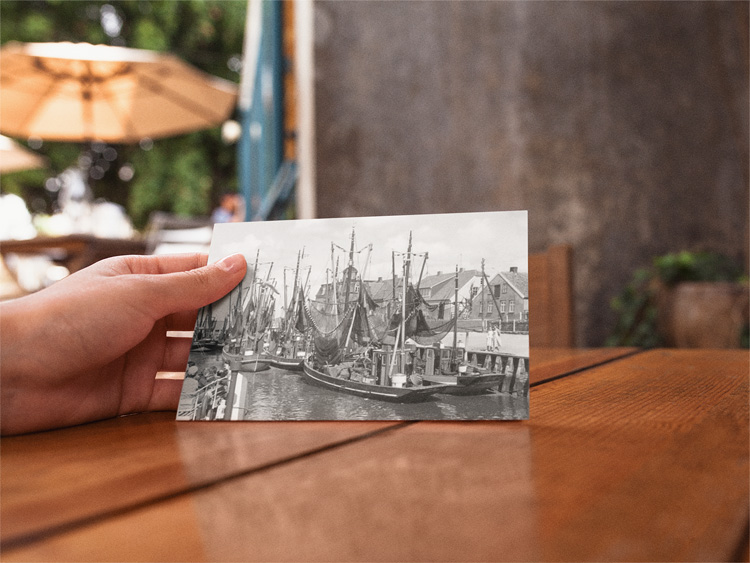 This image shows the impressive fleet of fishing boats at the harbour of Neuharlingersiel at the German North Sea coast. Shot by a relative on a sunny day in August 1957, it certainly qualifies as a historic document because it tells the story of a village that has been engaged in fishery for a long time.
