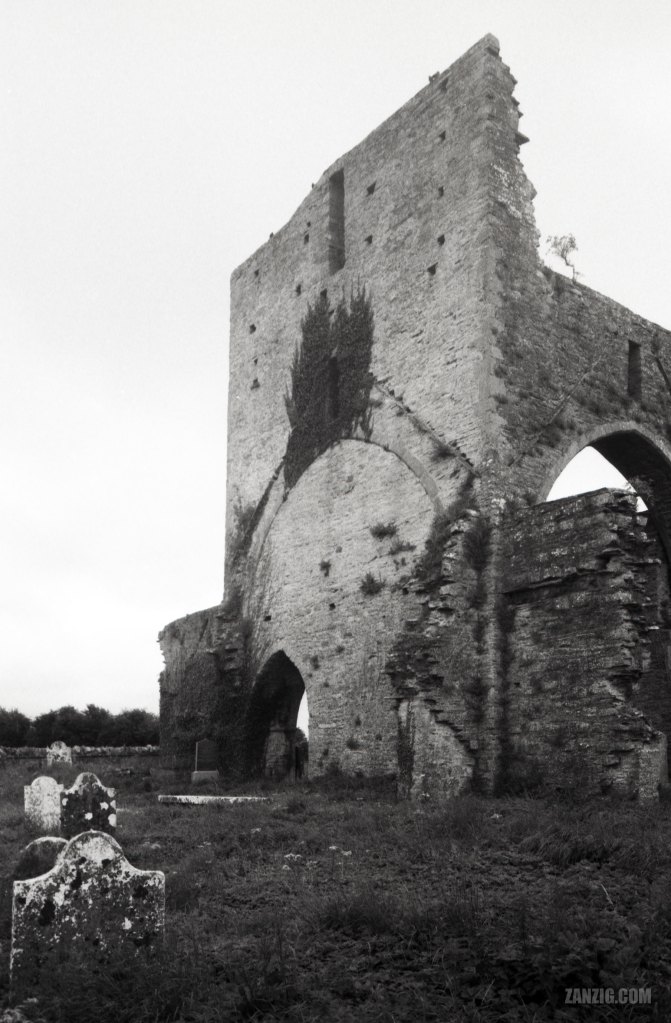 SEPTEMBER 1999 – A genuine black and white photo shows the remains of the Cistercian Abbey of Abbeylara in Co. Longford, Ireland. Photo © by Mark Zanzig/zanzig.com