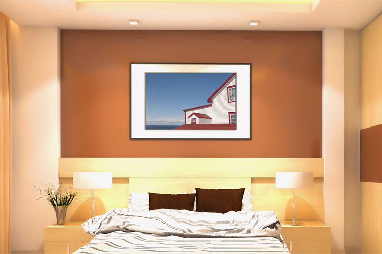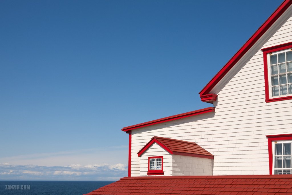 JULY 2009 – The afternoon sunlight illuminates the white and red building of the former lighthouse quarters in Matane, Québec, Canada. Photo © by Mark Zanzig/zanzig.com