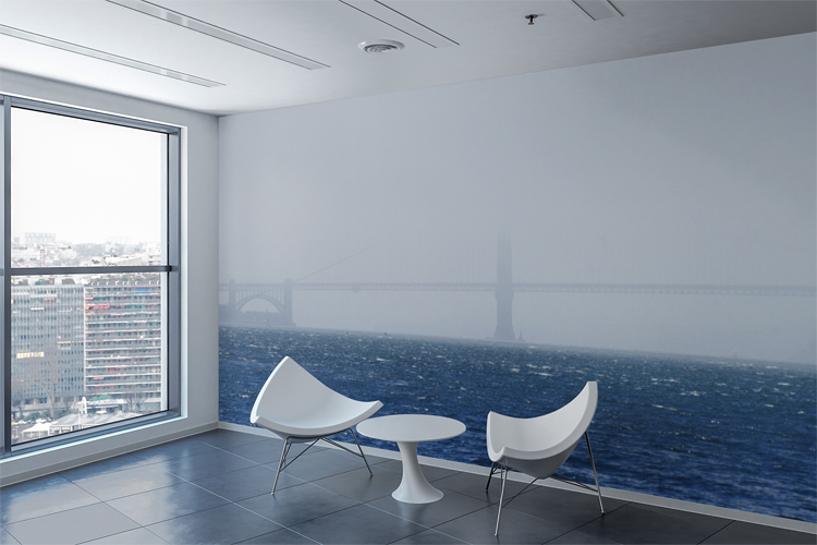 SEPTEMBER 2003 – View from the pier protecting San Francisco’s Aquatic Park Cove towards the Golden Gate Bridge which still hides in dense clouds. © Mark Zanzig/zanzig.com