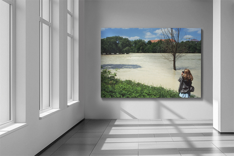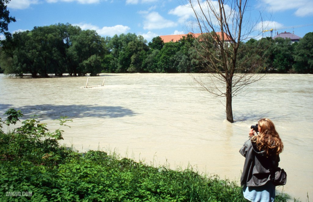 MAY 1999 – A photographer takes a photo of the Isar river in Munich that is completely flooded on a beautiful spring day. Photo © Mark Zanzig/zanzig.com