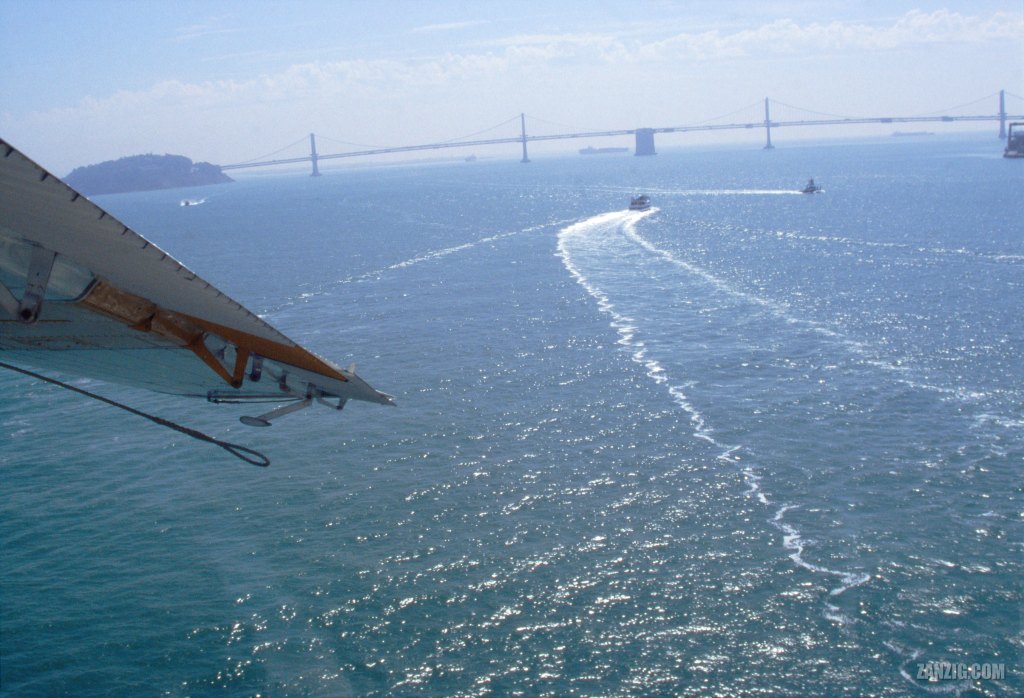 SEPTEMBER 2003 – The right wing of a de Havilland Beaver DHC-2 floatplane shortly after take off above San Francisco Bay in California. Photo © Petra Zanzig/zanzig.com