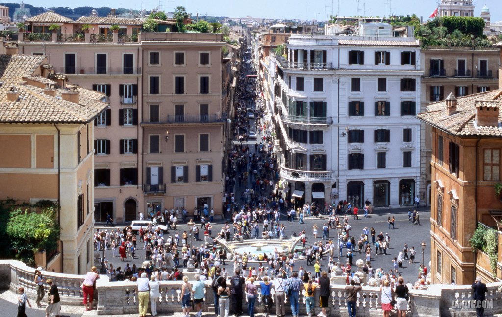 JUNE 2005 – View from the Piazza della Trinità dei Monti into the Via dei Condotti in Rome, Italy. © Mark Zanzig/zanzig.com