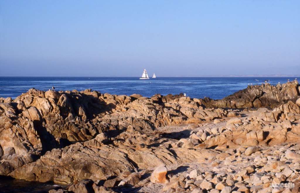 On our trip along California’s Highway Number 1 towards Los Angeles we stayed for a night in Pacific Grove. It had been our first day outside of San Francisco, and we had experienced a number of awesome views already. Once we had arrived at our accommodation – the Sea Breeze Inn & Cottages – we just dropped our luggage and started right away towards the Ocean View Boulevard. It was late in the afternoon and the light was already warm and the shadows were long, producing super sweet contrasts and naturally saturated colors. Two sailing yachts were heading towards the harbour.