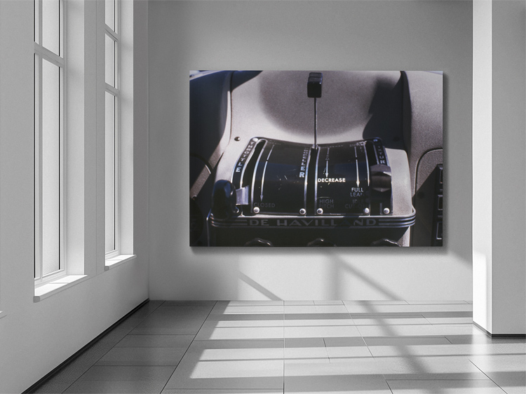 SEPTEMBER 2003 – Close-up of levers for throttle, propeller RPM, and mixture, in the center of the cockpit of a de Havilland Beaver DHC-2 plane in San Francisco in California. Photo © Petra Zanzig/zanzig.com