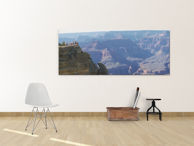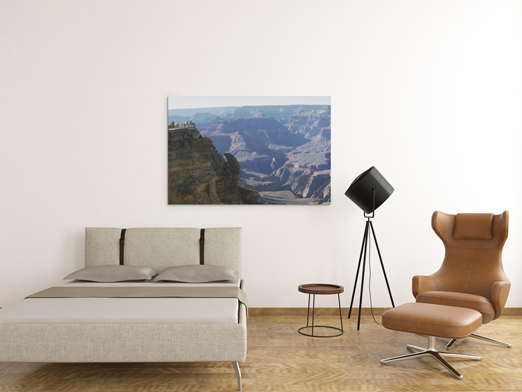 For photos, the morning and the late afternoons are best because the shadows add depth and help visualizing the enormous size of the canyon and surrounding rocks. I think I took this photo near Mather Point in the late afternoon. I placed the platform and the people deliberately into the top left corner to act as a visual scale: the people look tiny, dwarfed by the massive canyon that occupies most of the image.