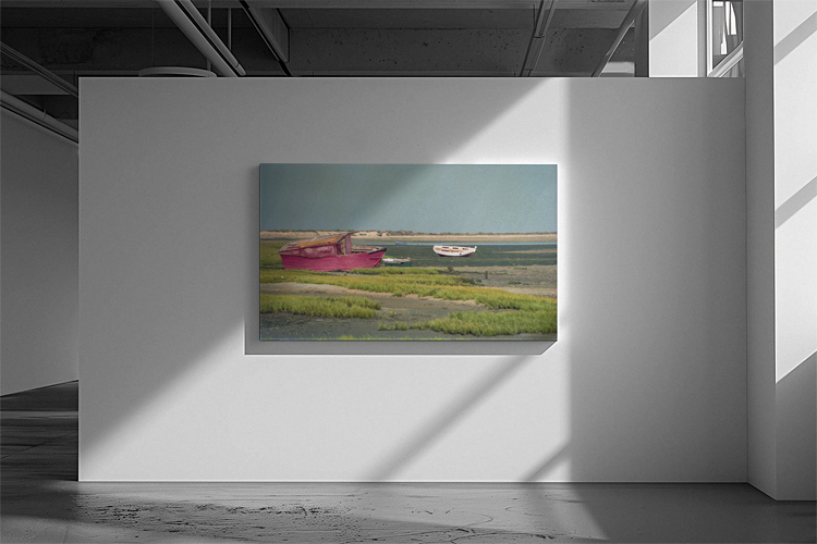 My photo shows the boats that have been moored near one of the saline fields. During ebb they will slowly drop to the wet, sandy soil of the lagoon.