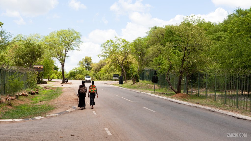 My photo shows the A8 towards north-west, seen from the Victoria Falls Car Park. The highway leads up to the nearby border crossing to Zambia (behind me.) It was very slow that day, probably because it was at the beginning of rainy season, and I like the relaxed African lifestyle perfectly visualized by the two ladies who slowly walked towards the town center.