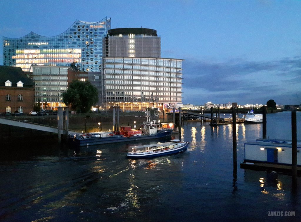 AUGUST 2023 – The Elbphilharmonie and Kehrwiederspitze in Hamburg, Germany, during the blue hour after sunset. Photo © Mark Zanzig/zanzig.com