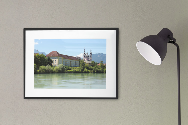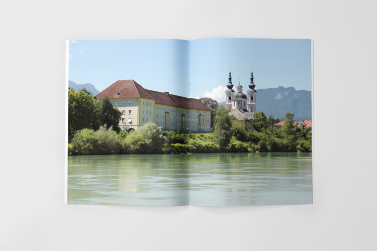 When we approached Villach, I captured this view of the Heiligenkreuzkirche, a roman-catholic church. I really like the tidiness of the scene – clear blue sky, the calm river, and the clean colors.