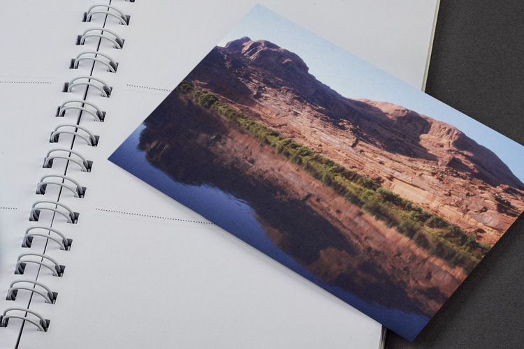 When we left the park towards sunset, we decided to take a drive along the Colorado River which was flowing ever so gently next to the highway. The rocks of the opposite side were showing some long shadows already and they were mirrored by the surface of the river.