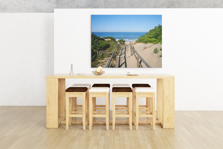 My photo shows one of the boardwalks that lead visitors over the sensitive dunes down to the beach. I love the clear, saturated colors of the morning light.