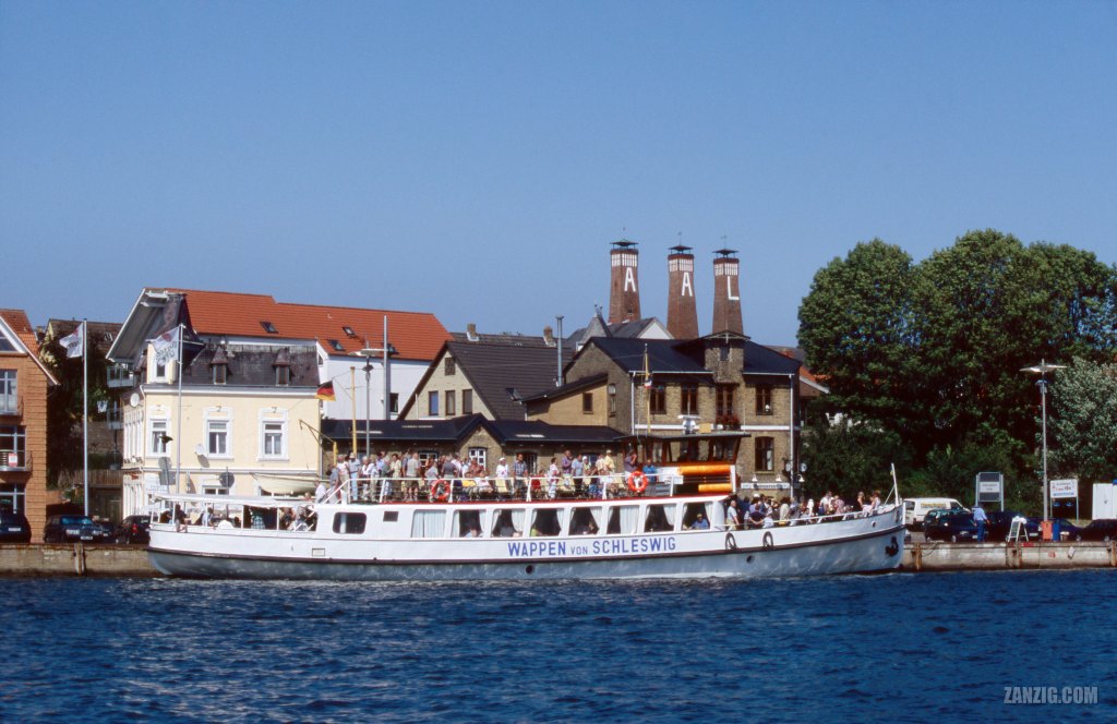 AUGUST 2004 – The passenger ferry Wappen von Schleswig in Kappeln, Germany, on a sunny day. Photo © Mark Zanzig/zanzig.com