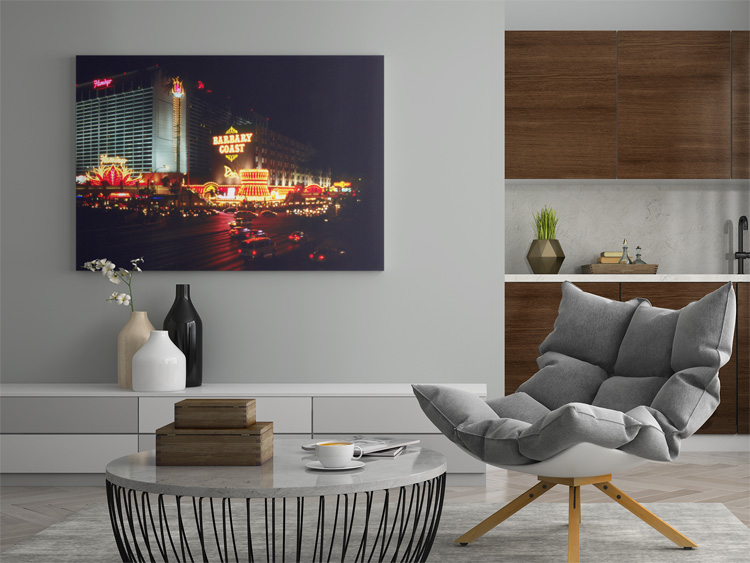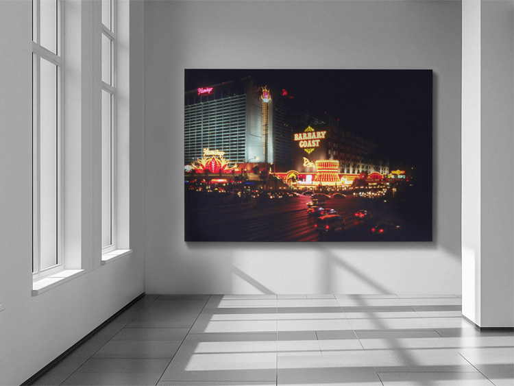 On our way back, the night completely took over, and I captured the busy crossing of the Flamingo Road/Las Vegas Boulevard South. The Flamingo Hotel still exists today. The Barbary Coast Hotel and Casino, however, was sold in 2004 and reopened as Bill’s Gambling Hall and Saloon which still operates today..