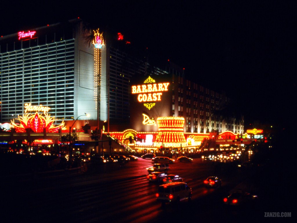 SEPTEMBER 2003 – The Barbary Coast Hotel and Casino and the Flamingo Hotel in Las Vegas in Nevada, on a busy Saturday night. Photo © Mark Zanzig/zanzig.com