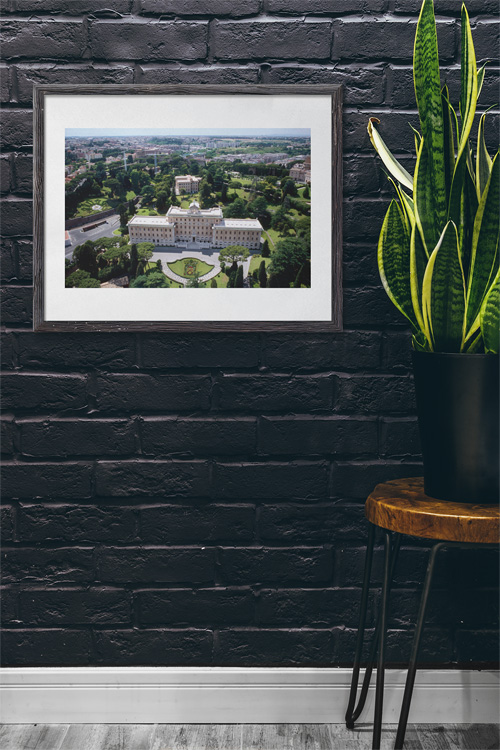 From the top, we enjoyed the 360° view over Rome. This is the view across the gardens towards West, with the Palazzo del Governatorato dello Stato della Città del Vaticano in the front and the Collegio Etiopico right behind.