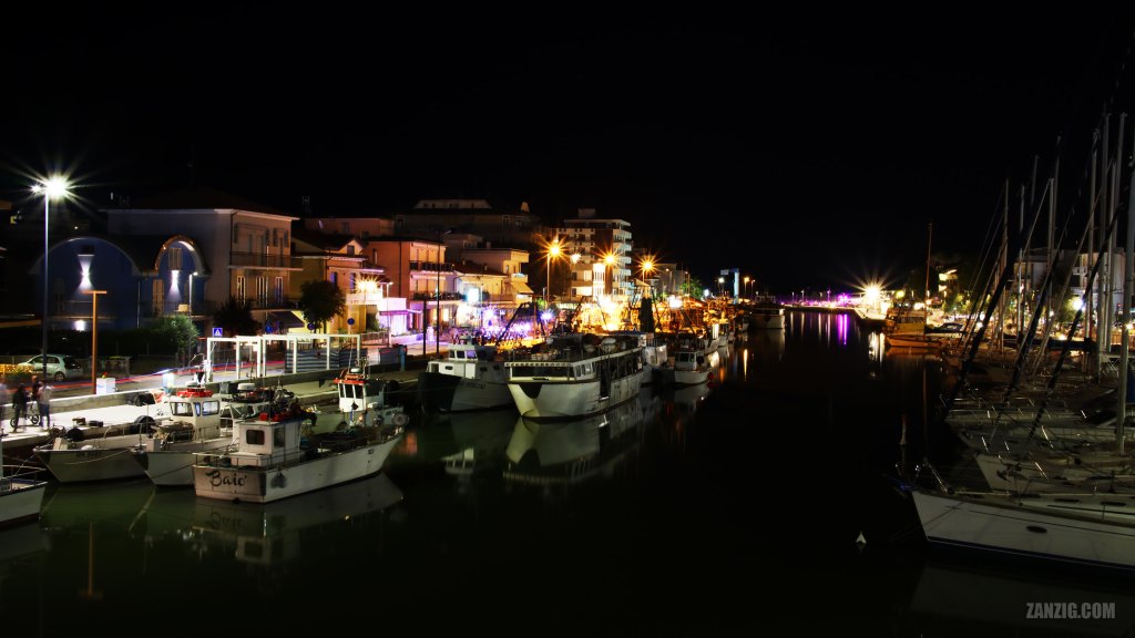 SEPTEMBER 2022 – The harbour of Bellaria Igea Marina in Italy at night. Photo © Mark Zanzig/zanzig.com