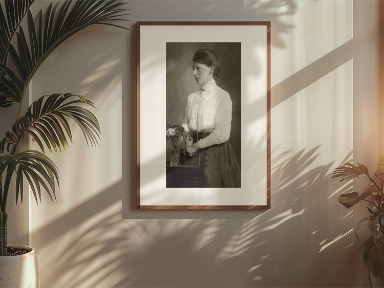 An undated CdV photo shows a young victorian lady in a photo studio in Kiel, Germany. Photo: Ferd. Urbahns