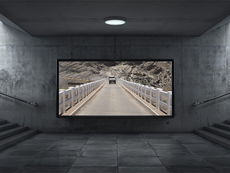 With a bit a lot of envy we watched as this sturdy Landrover Defender entered the narrow bridge. I thought this would be a cool image, also thanks to the symmetry and reduced color set.