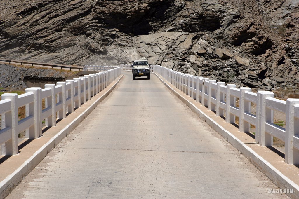 DECEMBER 2006 – A Landrover Defender enters the narrow Kuiseb Bridge on the C14 in Namibia. Photo © Mark Zanzig/zanzig.com
