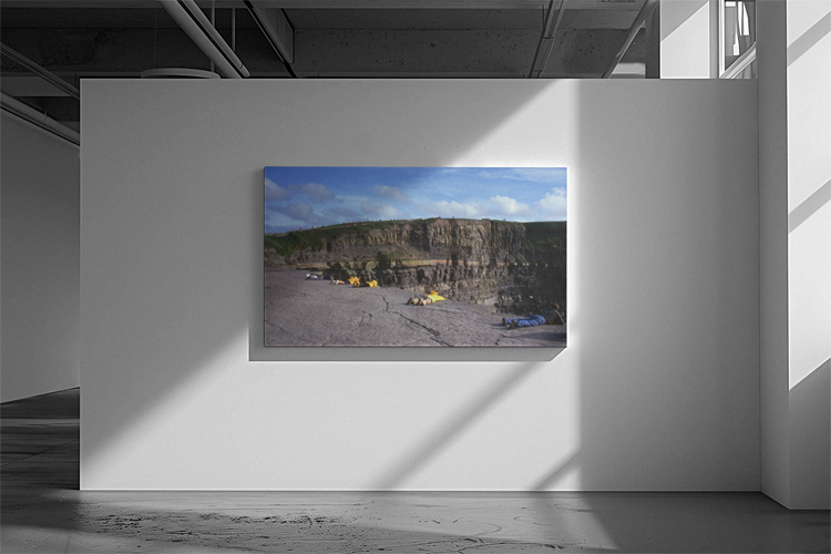 SEPTEMBER 1999 – Tourists have crawled to the edge of The Cliffs of Moher in County Clare, Ireland, to take a look down at the waves that clash 200 meters below. Photo © by Mark Zanzig/zanzig.com