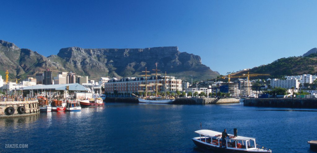 MARCH 2004 – The Alfred Basin of the Cape Town harbour in South Africa, with the beautiful buildings of the Victoria & Alfred waterfront and the Table Mountain in the back. © Mark Zanzig/zanzig.com