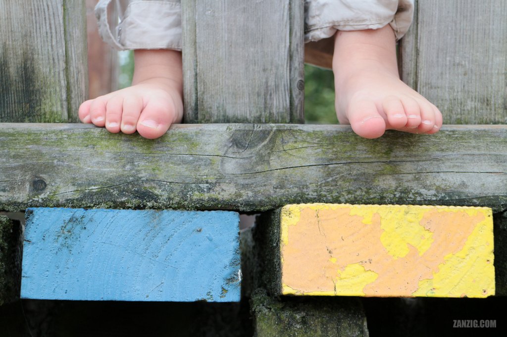 We were in Eckernförde, Germany, and had a good time at the beach. Near the tourist information we found a climbing frame, and our daughter Clara enjoyed exploring the frame almost every day. One day, when I had brought a camera, I captured this detail of her feet on eye-level – an unusual perspective triggering nice memories of the time when she still used to climb on playgrounds almost every day.