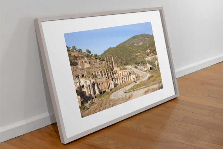 We were coming from the Spiaggia di Piscinas with its nice dunes and ultimate tranquility. Suddenly, the ruins of a huge industrial area appeared next to the road – the Laveria Brassey. A Vespa motorcycle drove by, disturbing the silence of the place, but I liked the contrast between a moving motorcycle and the ruins.