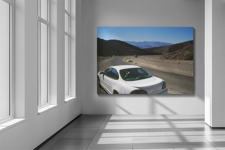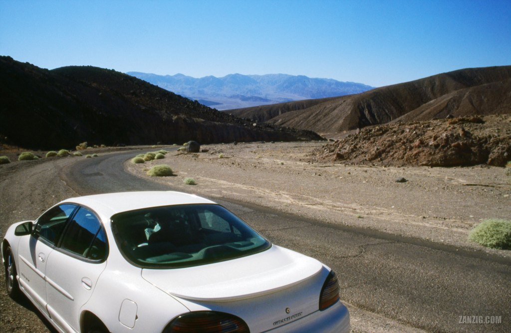 SEPTEMBER 2003 – A white Pontiac Grand Am sedan at the Artists Drive in the Death Valley National Park in California, USA. © Mark Zanzig/zanzig.com
