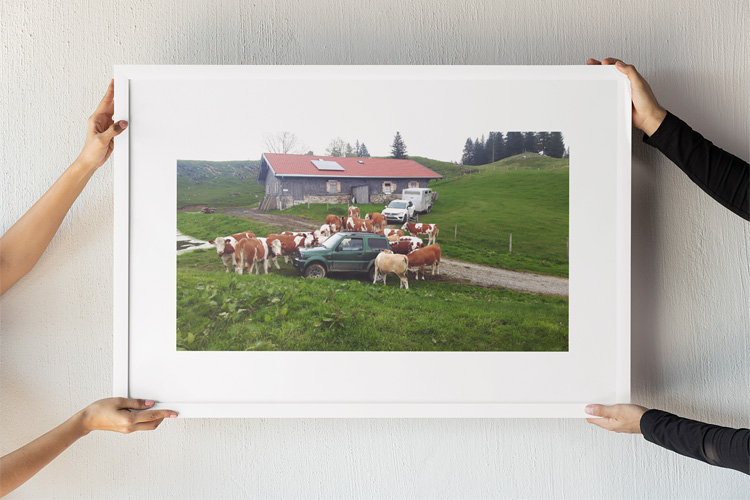 MAY 2023 – A cattle herd inspects a Susuki Jimny 4×4 car at the Huber Alm near Bad Feilnbach, Bavaria. Photo © Mark Zanzig/zanzig.com