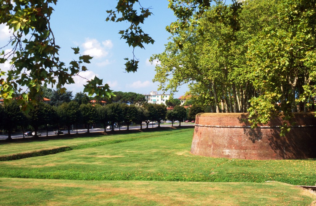 AUGUST 2000 – The Mura di Lucca, a sturdy brick wall, surrouns the historical town center of Lucca, Italy. Photo © Mark Zanzig/zanzig.com