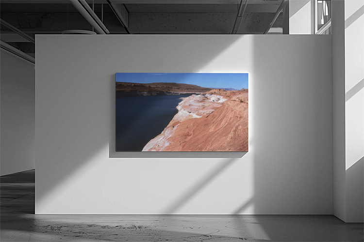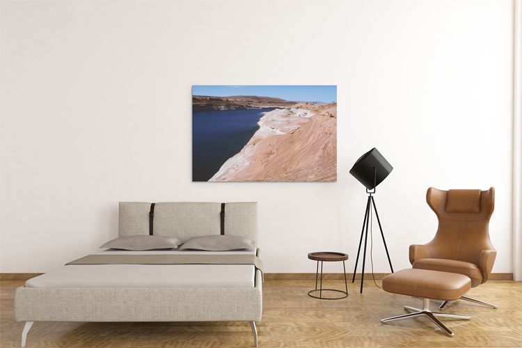 I really like the deep blue color of the lake that contrsts well with the light red rocks that form the former canyon. Super nice.