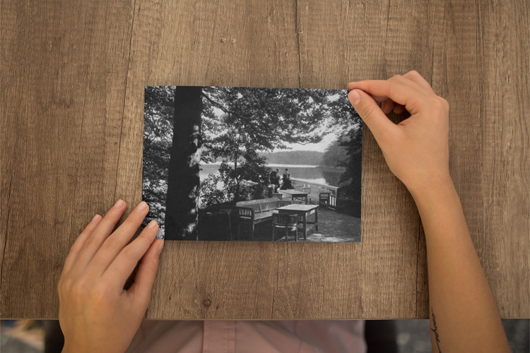 This print shows that the place has not changed at all over a period of almost two decades – just the furniture has been re-arranged. It is even more remarkable that this place exists almost unchanged today. The furniture has been removed but the benches are still there, and it’s still a place for getting carried away by dreams.
